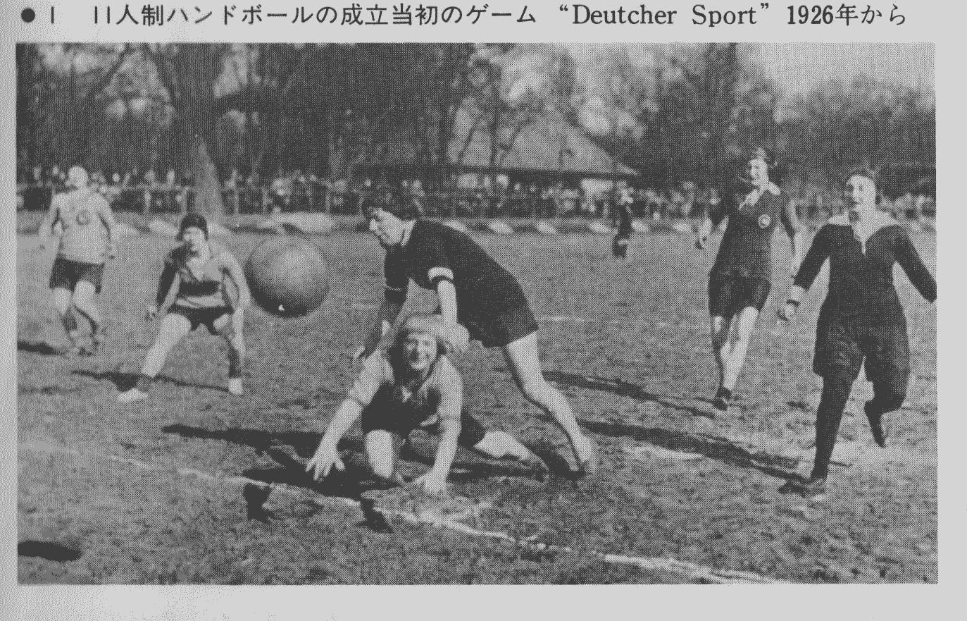 デンマークにおいても,19世紀末ハンドボールに似たボールゲームが行わ れていたが, 1906年ホルガー・ニールセンによってHAANDBOLDとして 競技規則が作られた。この競技はFW(フォワード)7人, HB(ハーフバック)5人, FB (フルバック)3人, G·K( ゴールキーパー)1人,の1チーム16名であ り, 30m~50m の競技場, 2m~3mのゴール,4m~7m のゴールエリアライ ンを持っていた。しかし冬場になるとこのボールゲームも地理的条件から行(次のページへ)